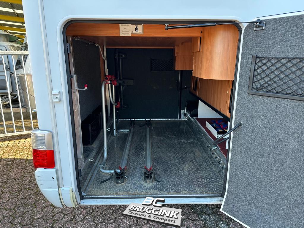 | Een vakantiehuis op wielen! Zo kan je deze Hymer B 798 SL tandemasser gerust noemen. Met heerlijk veel leefruimte en genoeg laadvermogen! De B 798 SL heeft voorin 2 draaibare voorstoelen met daarboven een 2 persoons hefbed van 1m95 x 1m50. Een ruime comfortabele L zitgroep, middenkeuken, aparte douche- en toiletruimtes en achterin de camper een vrijstaand twee persoons bed van 2m04 x 1m50 met daaronder een zeer ruime garage! Deze camper is voorzien van de volgende opties: - Zeer sterke Fiat 3.0 Mjet motor met 180 ok - Automatische versnellingsbak - Cruisecontrol - 2x Airbag - Elektrische opstap bestuurdersdeur - Radio/CD dubbel DIN Zenec met navigatie en achteruitrijcamera - Climatecontrol cabine - Lederen stuurwiel en versnellingspook - Plissé verduistering cabineramen - Voorraam voorzien van elektrisch bedienbaar rolluik binnenzijde - 2 Draaibare voorstoelen - Elektrische ramen en spiegels - 2 Persoons hefbed - Ruime L-zitgroep met daarboven een groot Hymer dakluik - Bekleding in fraai leder - Indirecte sfeerverlichting in de gehele camper - Hele hordeur plissé toegangsdeur - LCD tv op beugel in zitgroep - L-keuken met 3 pits gasstel - Plafondventilator boven de keuken - Elektrische vergrendeling alle keukenlades - Grote apothekerskast - Dubbeldeurs koelkast/vriezer met gasbakoven incl. grill - Omvomer 12V -> 230V sinus - ALDE vloeistofverwarming en boiler - Cassettetoilet - Zeer fraaie doucheruimte - Ruime slaapkamer met vrijstaand bed van 2m04 x 1m50 - Elektrisch bedienbare opstap toegangsdeur - 2 Grote garagedeuren - Fietsendrager in garage (2F) - Cassetteluifel Thule Omnistor - Trekhaak - Hydraulische poten E&P !! - Zonnepaneel 2x - Automatische schotel Oyster Een prachtcamper met veel bergruimte, veel leefruimte en geschikt voor nog járen camper plezier! Vanwege de grote vraag naar caravans en campers vragen wij u vooraf te informeren of de camper nog beschikbaar is. Kijk voor onze complete voorraad op onze website: www.brugginkcaravans.nl Ledig gewicht = kentekengewicht zonder opties en accessoires De verkoopprijs is exclusief kosten rijklaarmaken a € 995,- bestaande uit nieuwe APK, motorbeurt, tenaamstelling RDW, interieurcontrole, halfvolle brandstof tank, controle banden, complete uitleg werking van de camper en BOVAG kampeerauto GARANTIE met certificaat. Tevens begeleiding belasting en verzekering. Aan deze gegevens kunnen geen rechten worden ontleend. FOUTEN EN WIJZIGINGEN VOORBEHOUDEN <br> Bruggink Borculo Kamerlingh Onnesstraat 19 7271 AZ Borculo Tel. 0545-271718 <a href="//www.brugginkcaravans.nl/aanvragen-offerte/Art=608" title="Aanvragen van een offerte"><b>Offerte aanvraag</b></a><br>
