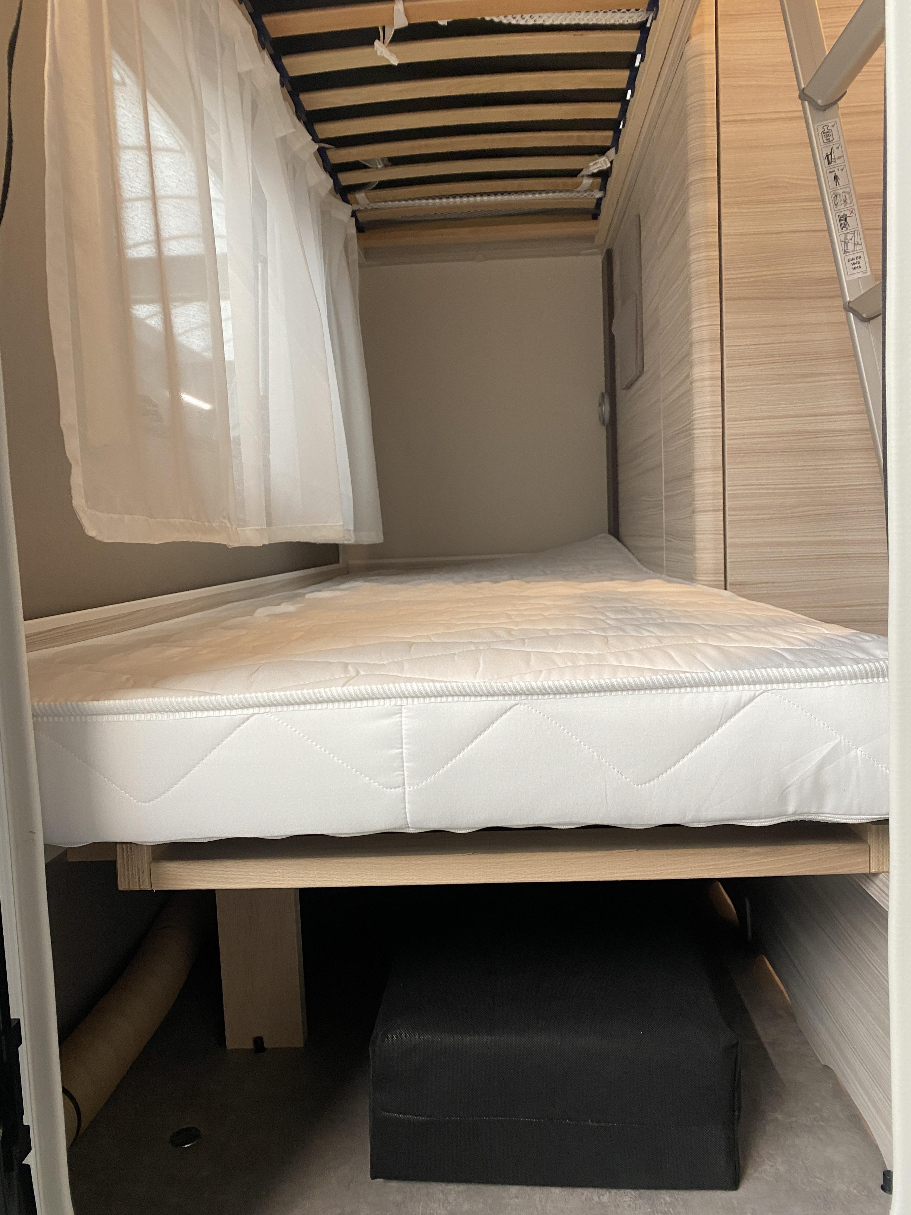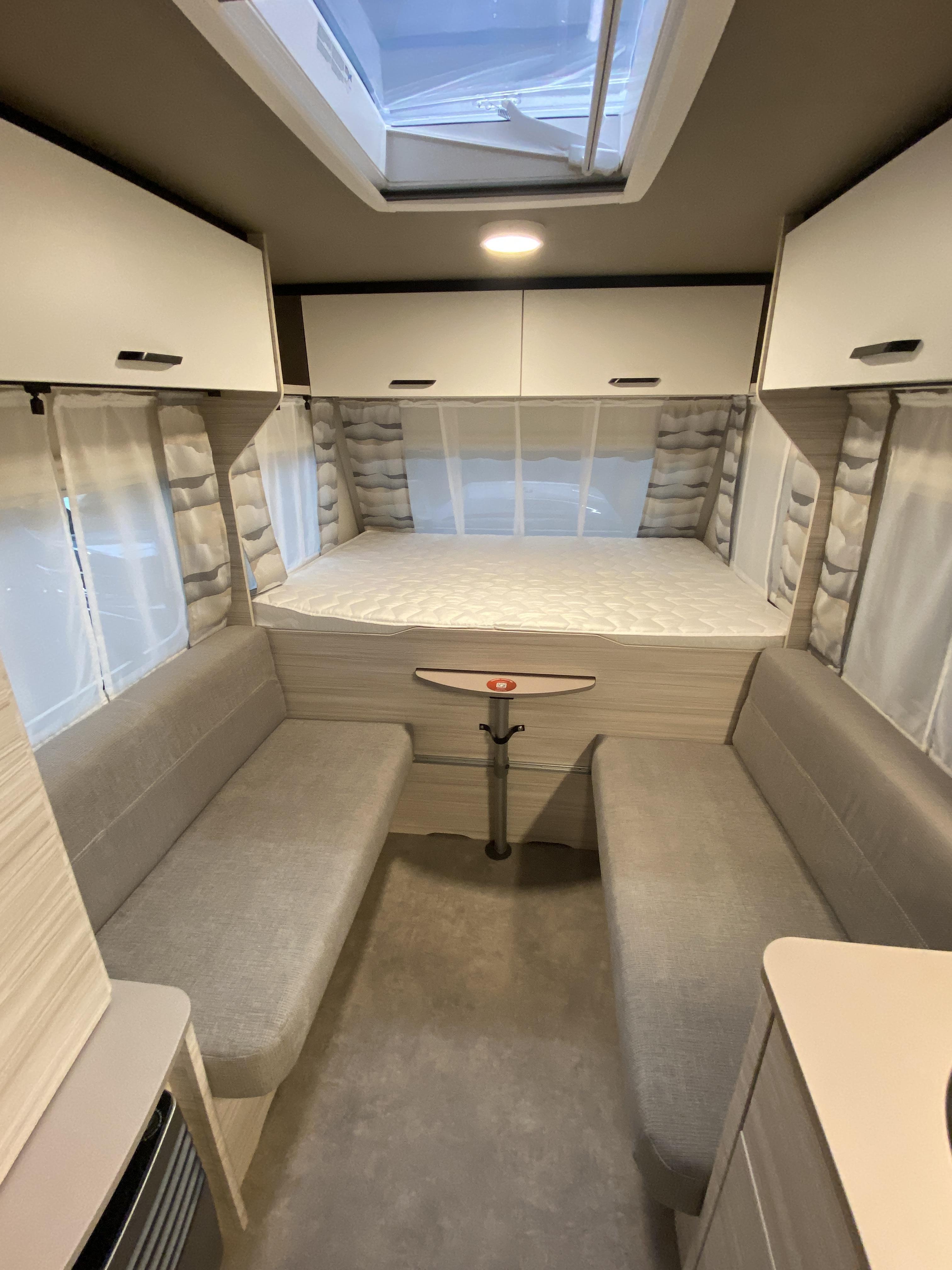 | De caravan met 'Activ' actiepakket is compleet voorzien van: Serviceluik rechts voor stabilisator koppeling vaste vers watertank losse vuil watertank boiler voor warm water hordeur Schokdempers groot dakluik wieldoppen ringverwarming as tot 1500kg voorraam 4x led spotjes op rails 1x USB-Hub in licht rails Prijs van de caravan normaal € 27.176,- Nu met € 4.686 euro "ACTIV" voordeel compleet € 22.490,- Deze Dethleffs C'Joy biedt een praktische indeling, zodat u optimaal kunt genieten van uw kampeervakantie. Door de toepassing van glasvezelversterkt kunststof is het dak van deze Dethleffs caravan hagelbestendig. Door het riante laadvermogen van 417 kilo, kunt u al uw vakantiespullen makkelijk meenemen. Uw bagage kunt u ook van de buitenzijde snel bereiken via het serviceluik. In de ruime treinzit vindt u een gezellige plek om te zitten, deze kan uiteraard ook dienen als extra slaapplaats. Het keukenblok is centraal in de caravan gemonteerd en is onder anderen uitgerust met een 3-pits gascomfoor, spoelbak en kraan. Om uw etenswaren op te bergen is er een koelkast (131 liter) met vriescompartiment ingebouwd. De ladekast biedt u een fraaie bergplaats voor al uw keukenspulletjes. De kinderen zullen zich direct thuis voelen in het dwars geplaatste stapelbed. De badkamer biedt wasgelegenheid in de vorm van een wastafel. Ook is er een ingebouwd cassettetoilet. Het grote dakluik zorgt voor veel daglicht in de caravan, ook biedt het een prima ventilatiemogelijkheid. Het luchtcirculatiesysteem zorgt daarbij voor een goede verdeling van de verwarmde lucht. In deze caravan is ook een hordeur ingebouwd. Daardoor zult u in deze caravan veel minder last van insecten hebben. Omdat de caravan is uitgerust met een stabilisatorkoppeling, heeft deze een rustiger weggedrag. Neemt u contact op voor een bezichtiging van deze Dethleffs C'Joy of bezoek onze showroom. Onze medewerkers staan u graag te woord. |