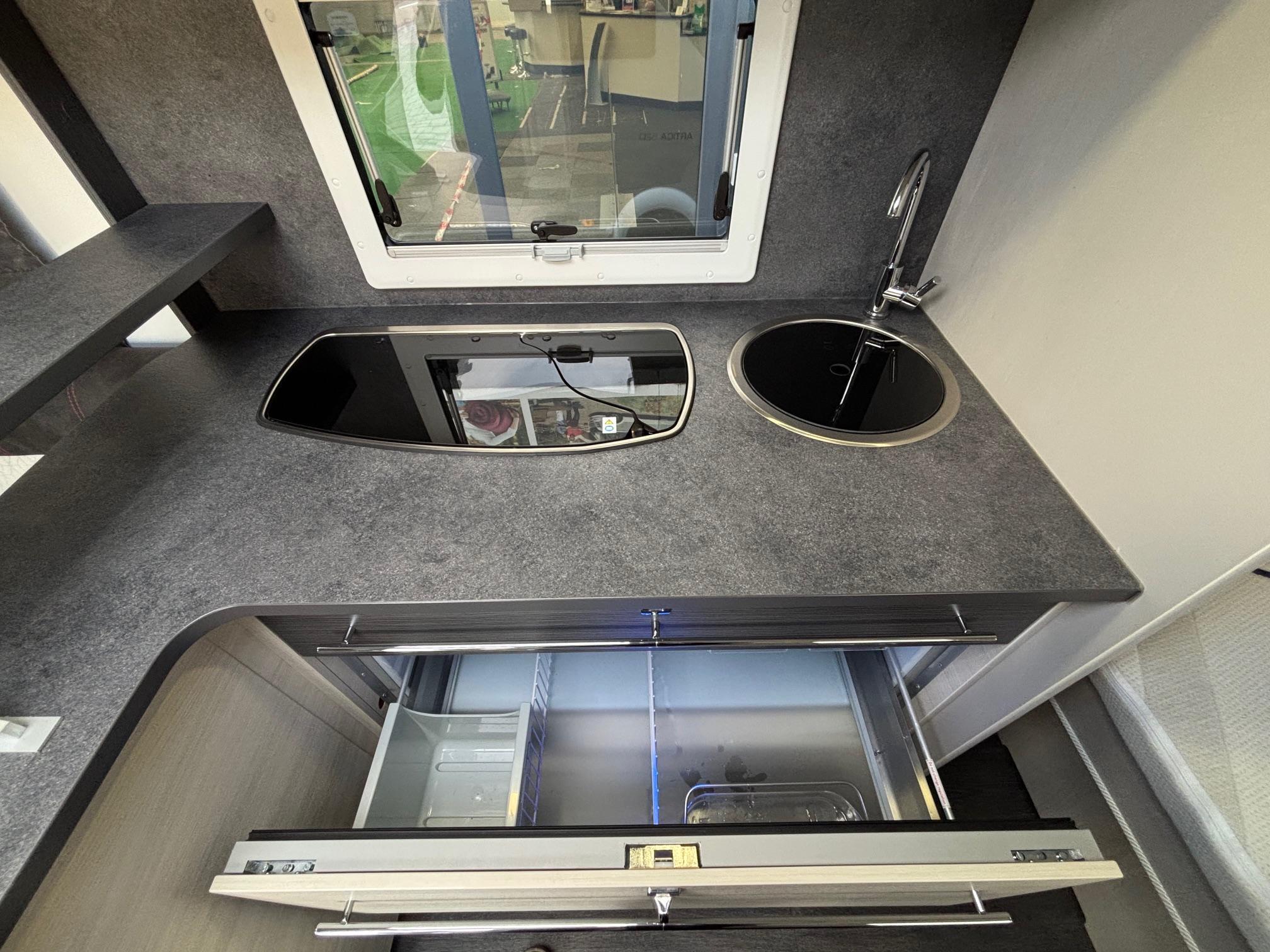 | De afleverkosten van deze gebruikte caravan: € 595,- Wat kunt u verwachten in deze afleverkosten: 1 jaar Bovag-garantie Bovag onderhoudsbeurt Veiligheids-check Reiniging interieur en exterieur droogloopmat U heeft in deze praktisch ingerichte Caravelair Artica van bouwjaar 2023, de beschikking over slaapgelegenheid voor 4 personen. U kunt uw fietsen makkelijk op de caravan vervoeren dankzij de fietsdrager. Deze caravan heeft een laadvermogen van 318 kilo. Hierdoor kunt u al uw vakantiebagage prima meenemen. Op de camping kunt u de caravan dankzij de mover snel op de gewenste plaats zetten. Uw bagage kunt u ook van de buitenzijde snel bereiken via het serviceluik. De caravan heeft een gezellige rondzit die u eenvoudig kunt ombouwen tot comfortabele slaapplaats. De keuken is in het midden van de caravan geplaatst. Er is voldoende bergruimte, uiteraard zijn er ook een 3-pits kooktoestel en gootsteen met kraan aanwezig. De 14 liter boiler, die in de caravan is ingebouwd, voorziet u snel van warm water. Om uw etenswaren makkelijk op te bergen is er een ruime ladekoelkast (150 liter) met vriescompartiment ingebouwd. Het Franse bed, dat in de lengte is geplaatst, biedt volop ruimte voor 2 personen. In de caravan kunt u ook douchen. Er bevindt zich een doucheruimte naast het slaapgedeelte. De airco en het dakluik zijn een uitkomst tijdens de allerwarmste dagen, zij houden de caravan lekker koel. Voor een goede verdeling van de verwarmde lucht is de caravan voorzien van een circulatiesysteem. De handige Fiamma zakluifel is snel op te zetten en beschermt u tegen zon en regen. Neemt u contact op voor het maken van een afspraak of bezoek onze showroom. Wij staan u graag te woord. |