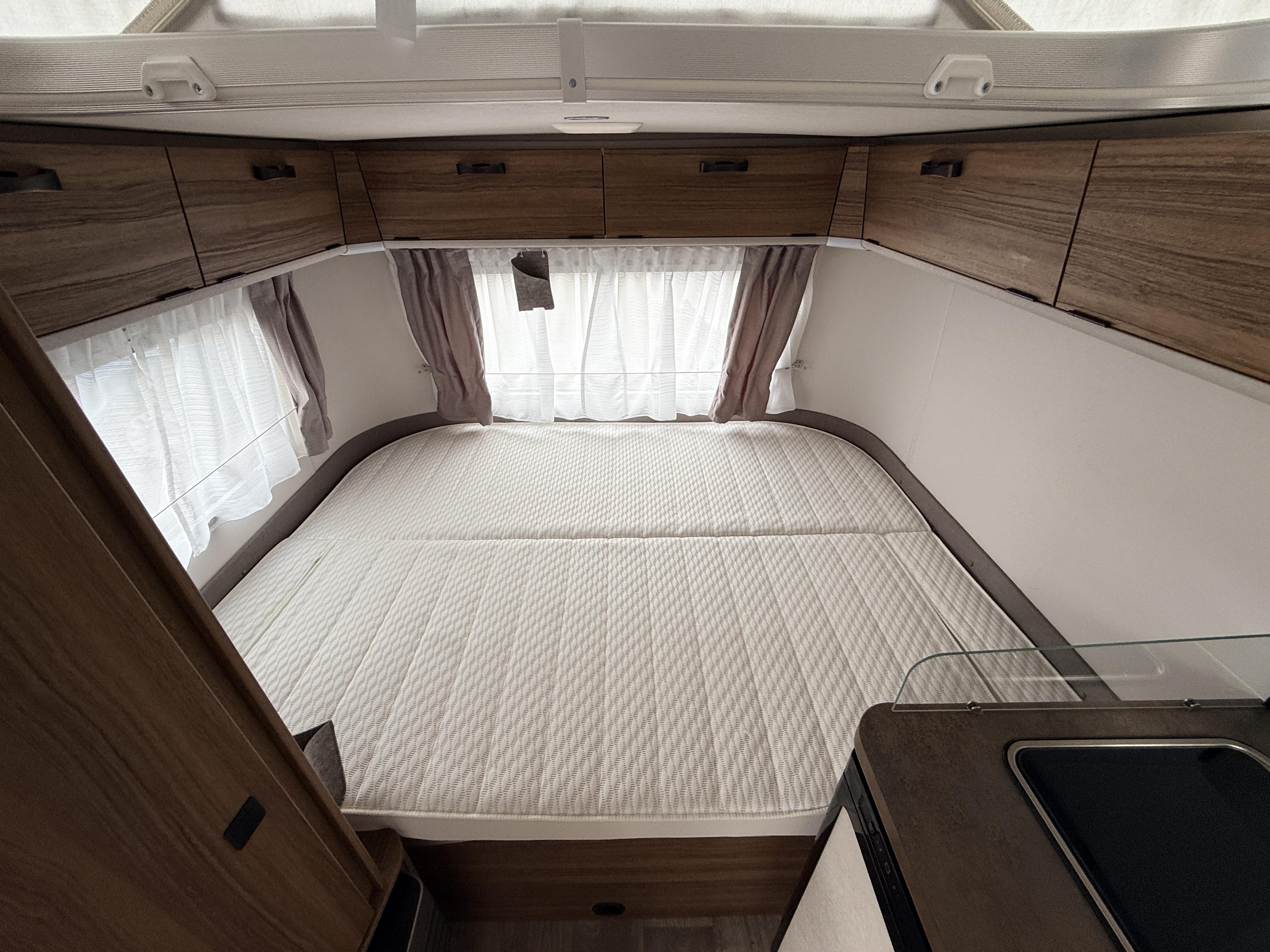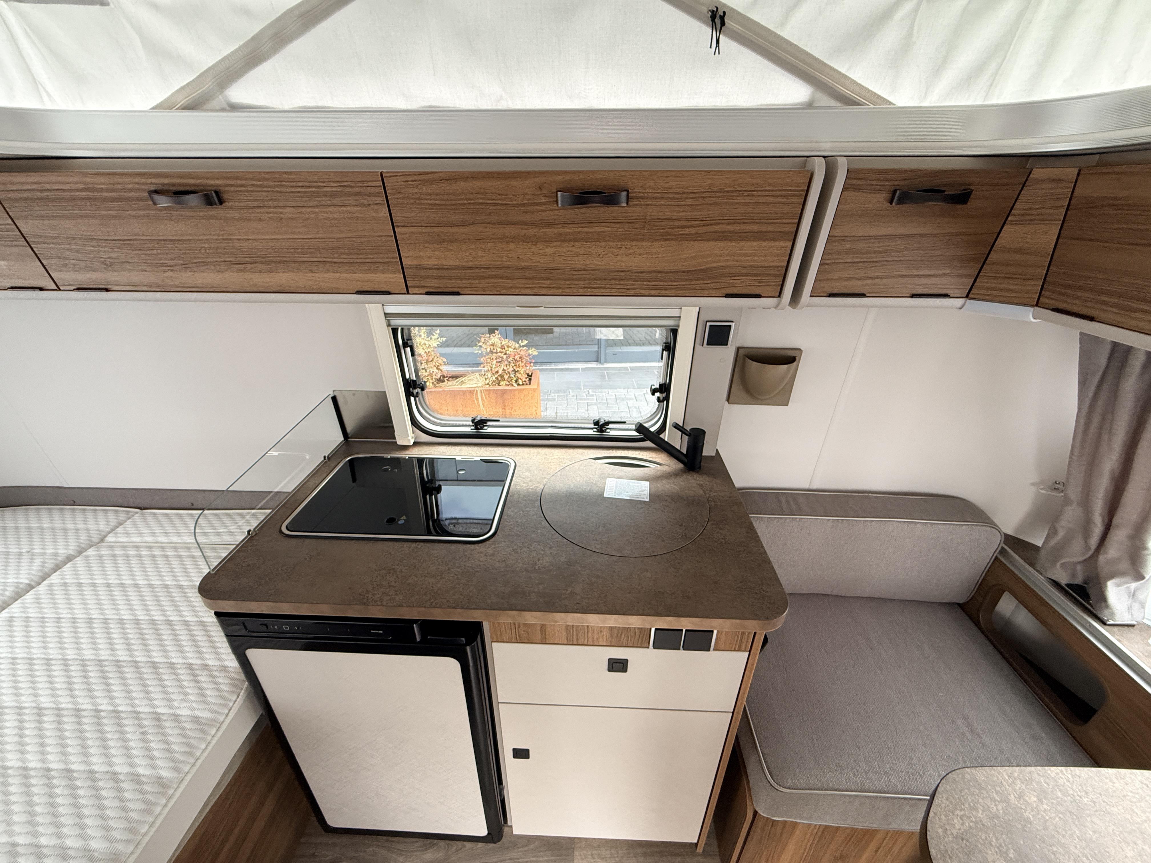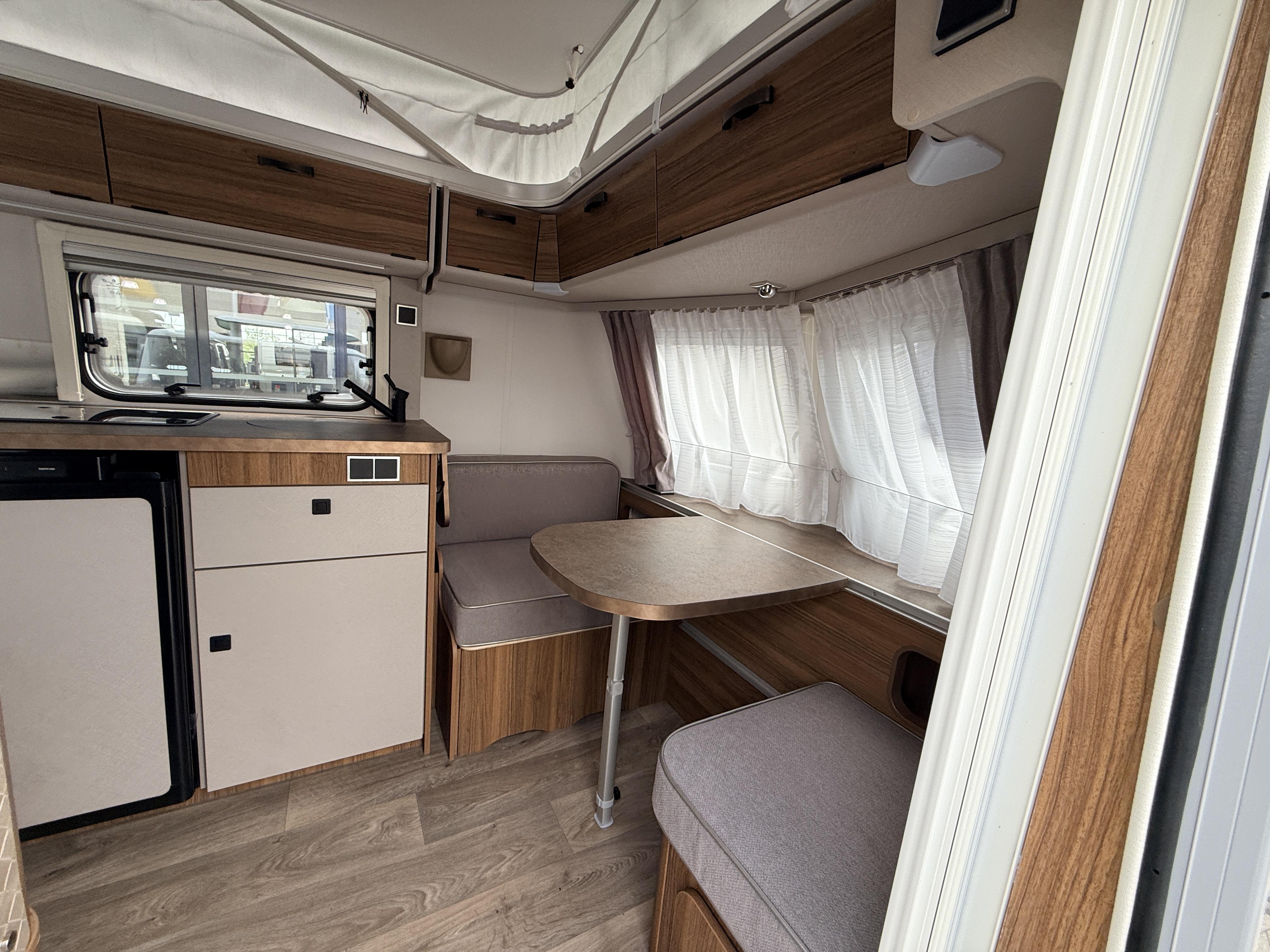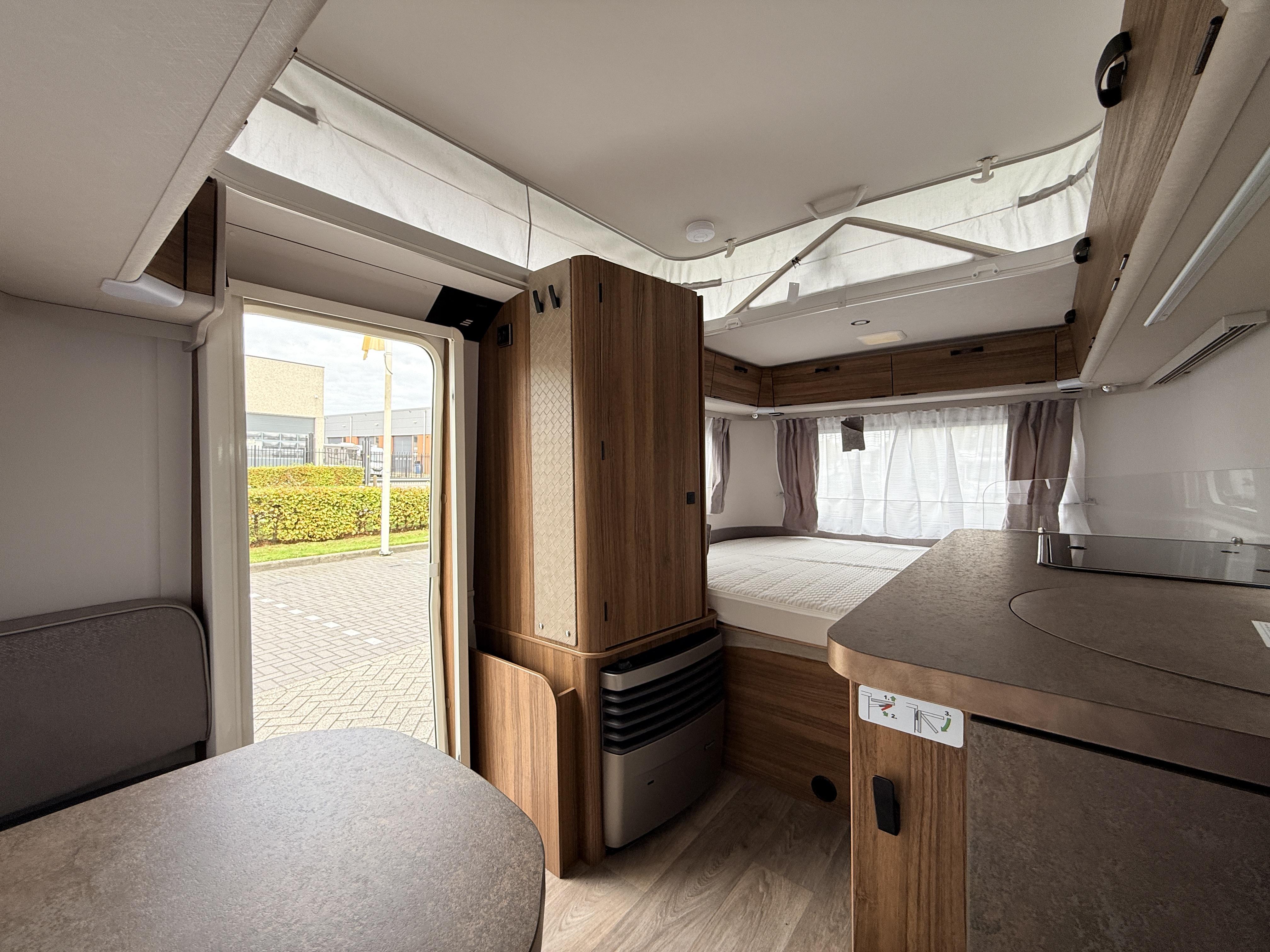 | Combicassettes, Hordeur, Kachel, Koelkast, Serviceluik, Buitenlamp, Schoonwatertank (vast), Omvormer, Hefdak, Schokbreker, Disselafdekking, Gascomfoor (2), Vriesvak, Hagelbestendig dak, Leeslampjes, Lattenbodem, Geen accessoires gevonden. |