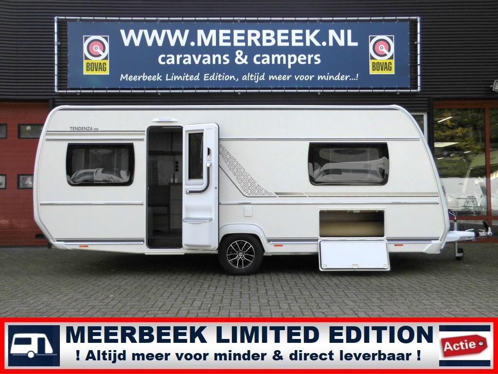 | FENDT PRIMEUR 2026: De nieuwe Fendt Tendenza 550 SG enkele bedden model 2026 met nieuw automotive design front, nieuw automotive design achterzijde met LED verlichting, nieuwe moderne stofferingen en bi-color meubeldecor, stahoogte 198cm, indirecte LED verlichting, nieuwe dual LED voortentlamp, 154L compressorkoelkast met aan 2 kanten te openen deur, Truma Combi 4 boiler/kachel met CP Plus paneel etc.etc.! ***Getoond model is voorzien van diverse opties & accesoires*** Nieuwe Fendt caravans, rechtstreeks vanaf de fabriek met 2 jaar volledige fabrieksgarantie en 12 jaar waterdichtheidgarantie. Al onze prijzen zijn altijd inclusief BTW en volledig rijklaar. Bij Meerbeek Caravans & Campers is het hele Fendt 2026 programma leverbaar: NEXT 380 Apero 465 SFB, 465 TG, 495 #Connect, 495 SFB, 495 SKM, 515 SG Apero Active 390 FH, 560 SKM Bianco Activ 390 FHS, 445 SFB, 465 SFH, 465 SGE, 495 SFE, 515 SGD, 515 SKF, 515 SGE, 550 KMG, 550 SD, 560 SKM Bianco Selection 465 SFB, 465 TG, 495 SG, 515 SG, 515 SKM, 550 SKM Tendenza 465 SFB, 515 SG, 550 SG, 560 SFDW, 560 SG, 650 SFD Diamant 560 DW, 560 FD, 560 SG, 560 SGW, 650 GD, 650 GDW Ondanks onze grote zorgvuldigheid kunnen er aan deze advertentie geen rechten worden ontleend. Meerbeek is uw caravan en camperdealer! Wij zijn leverancier van de caravanmerken Adria, Beachy, Fendt, Hobby, LMC & NEXT. Tevens zijn wij leverancier van de campermerken Dethleffs, Hobby & LMC. Alle topmerken onder 1 dak! Op ruim 7500 m2 vol kampeerplezier beleeft u bij Meerbeek alvast veel vakantie voorpret. Ontdek de caravan, camper of buscamper die bij u past! Profiteer van onze geselecteerde occasion caravans of campers. Vanzelfsprekend zijn wij gecertificeerd lid van Bovag, Aveco & RDW. U bent natuurlijk van harte welkom in onze showroom waar u hartelijk zult worden ontvangen door één van onze kampeerspecialisten. Heeft u vragen over deze prachtige nieuwe caravan? Vraag het aan Gerrit-Jan, Mark, Marcel, Rinaldo, Ryan of Rocco. Kwaliteit, service en persoonlijke benadering, dát beleeft u bij ons familiebedrijf. Tot ziens in Doetinchem, wij helpen u graag. Het Meerbeek team. 7 Redenen om een caravan / camper bij Meerbeek te kopen:
